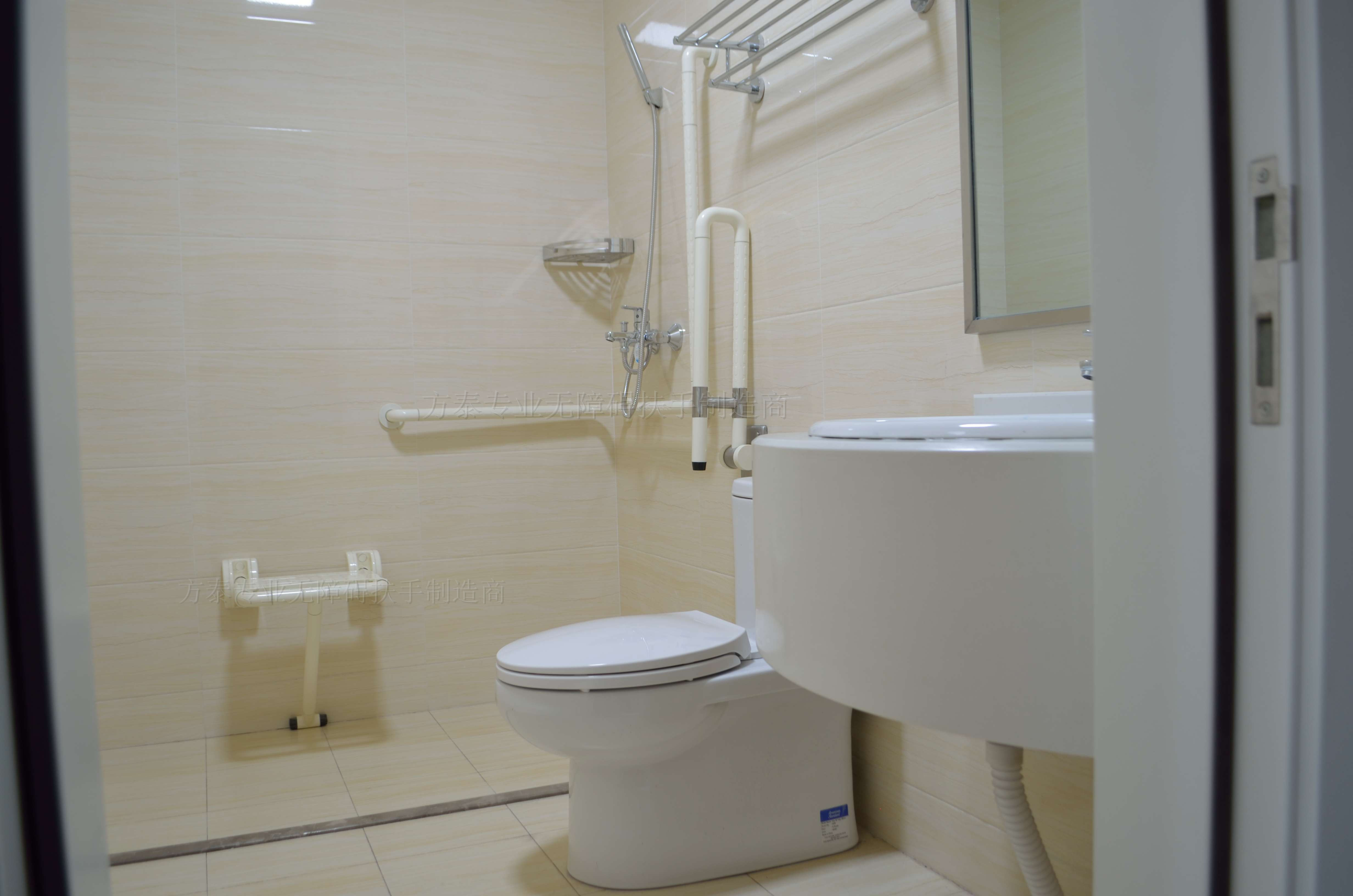 但是折叠式的淋浴凳没有可以借力的地方,如果老人不能自理或者力气较弱,就不太适合使用这款产品。这时应使用带靠背的浴椅。浴椅对这些老年人来说更加安全,也为护理人员提供了便利。我们公司研发的一款可移动护理淋浴椅,去年在北京的国际福祉博览会上就大受欢迎。这款浴椅配有万向轮,移动方便,用料上也做了防水和耐腐蚀处理。一位残疾人朋友当场体验了一把,并夸赞我们的产品非常适合她的日常需要。